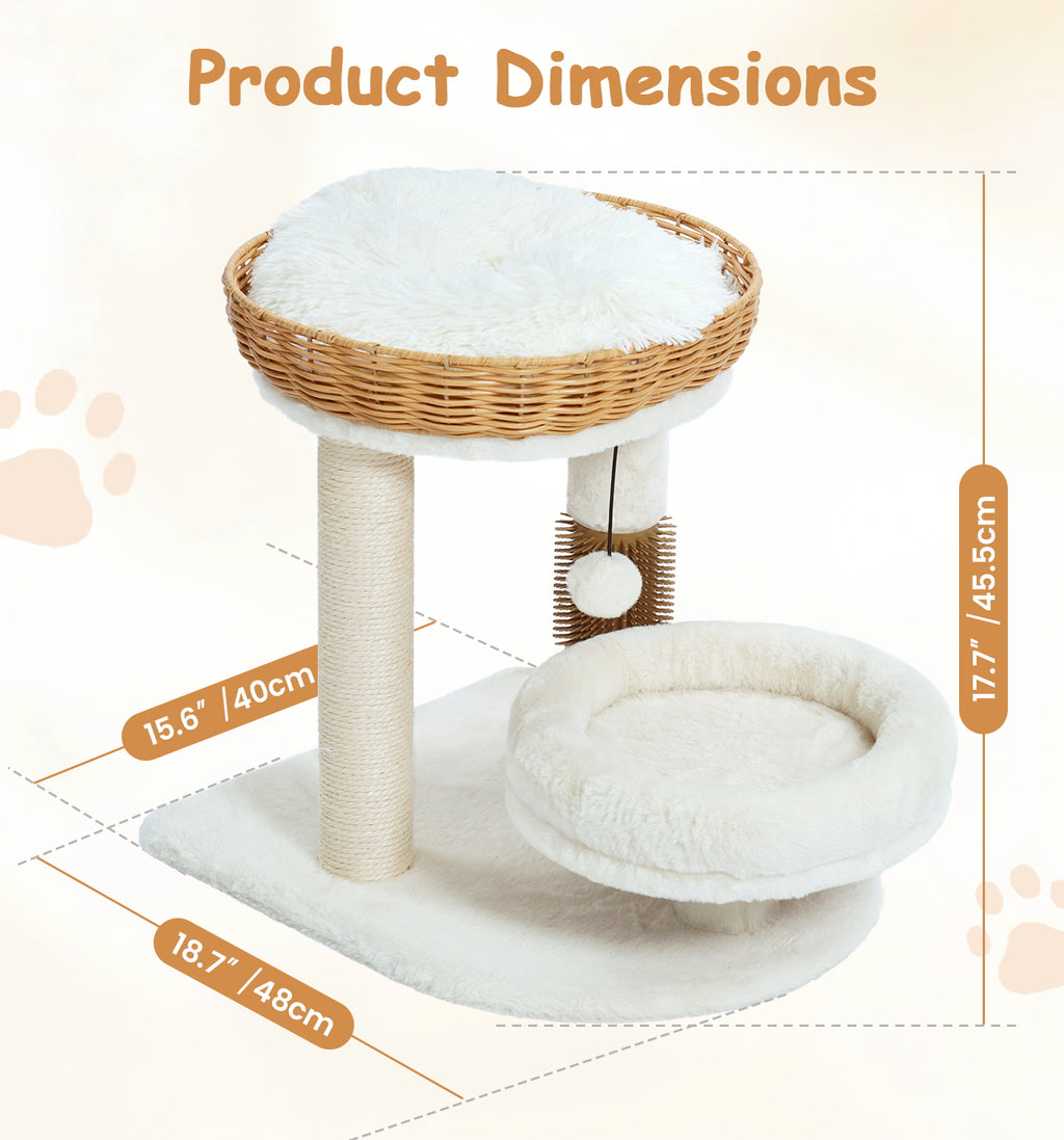 Made4Pets Beige Wood Cat Tree with Rattan Cat Condo
